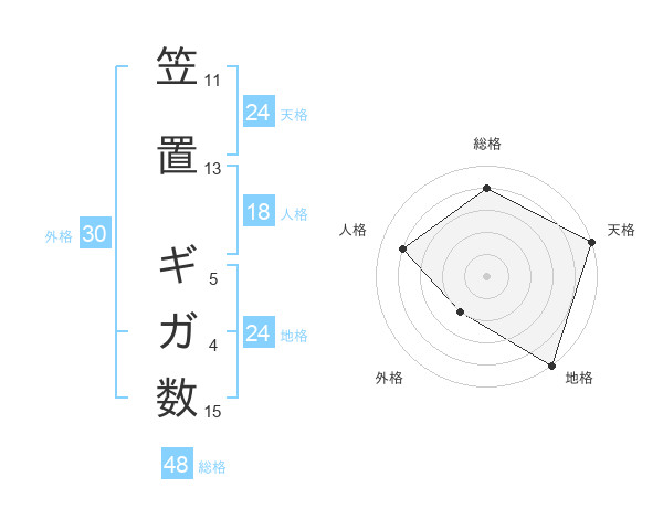 笠置 ギガ数さんを姓名の画数から五運を鑑定