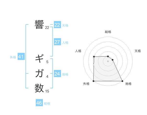響 ギガ数さんを姓名の画数から五運を鑑定