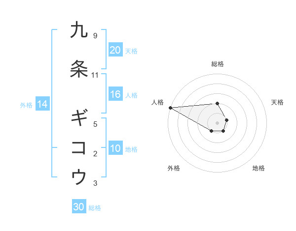九条 ギコウさんを姓名の画数から五運を鑑定