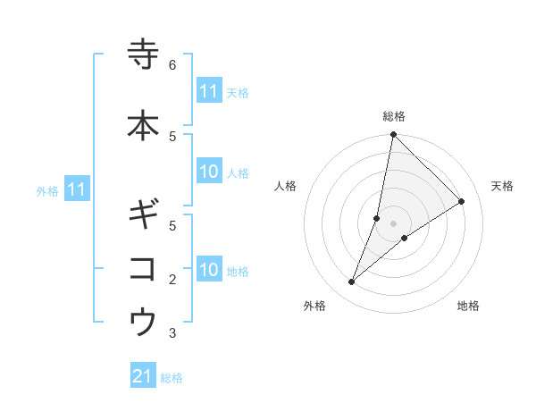 寺本 ギコウさんの天格は11画の4点!