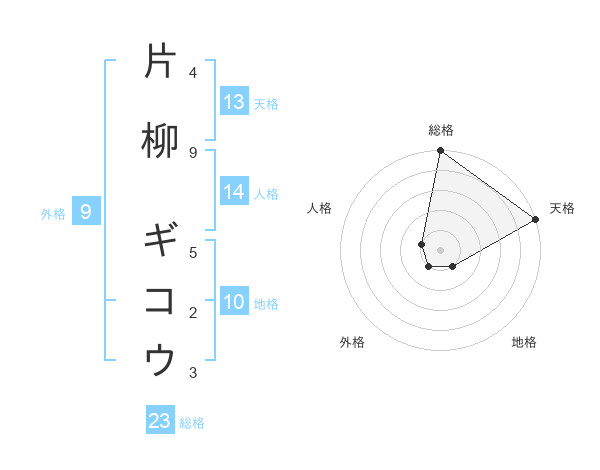 片柳 ギコウさんの総格は23画の5点!