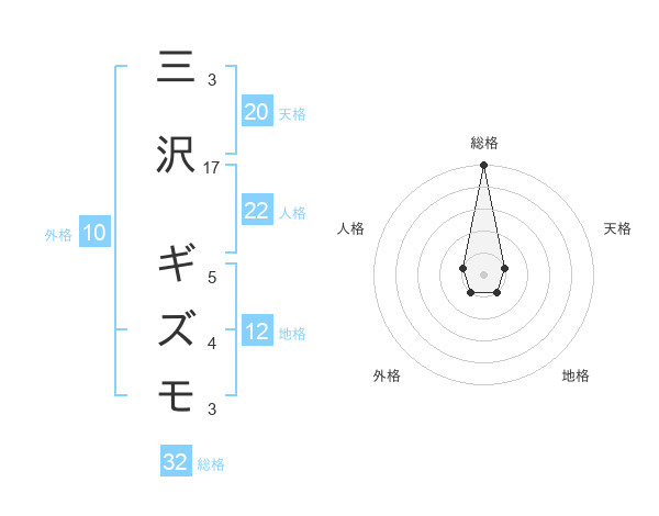 三沢 ギズモさんを姓名の画数から五運を鑑定