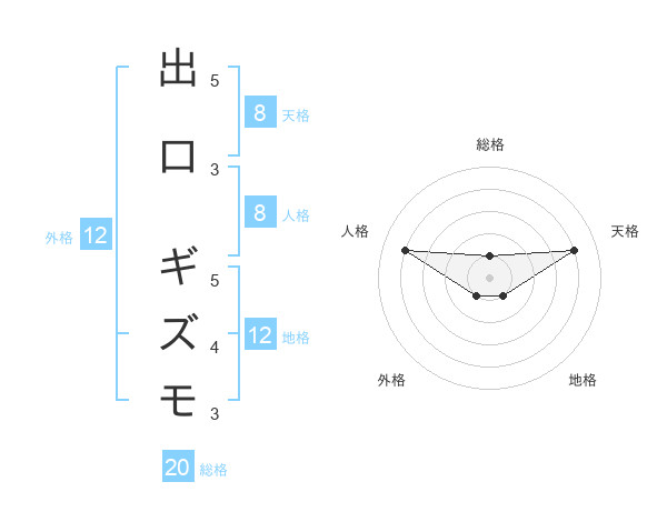 出口 ギズモさんの天格は8画の4点!