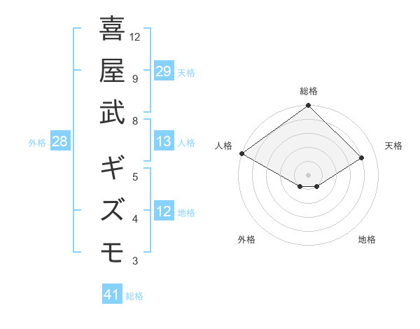 喜屋武 ギズモさんを姓名の画数から五運を鑑定