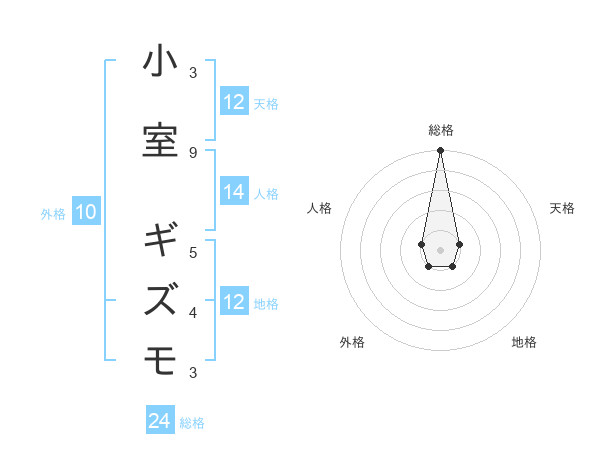 小室 ギズモさんを姓名の画数から五運を鑑定
