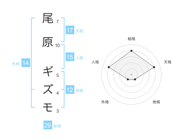 尾原 ギズモさんの天格は17画の4点!