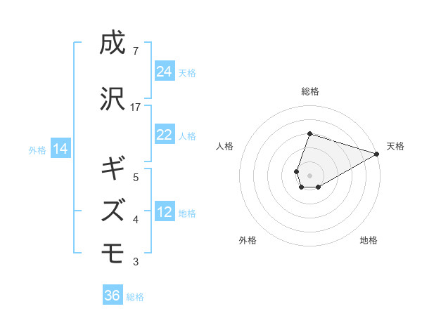成沢 ギズモさんの天格は24画の5点!