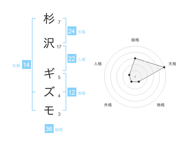杉沢 ギズモさんを姓名の画数から五運を鑑定