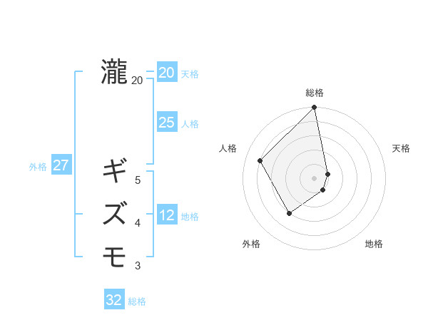 瀧 ギズモさんの総格は32画の5点!