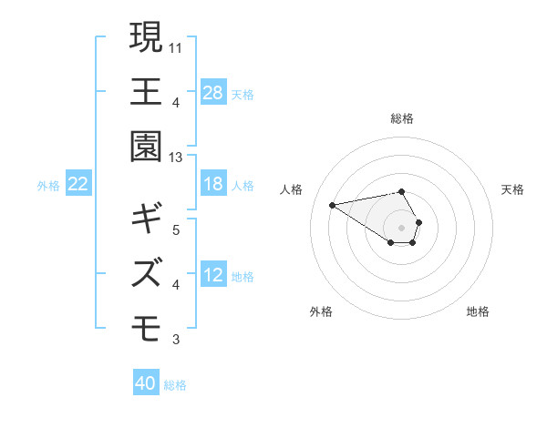 現王園 ギズモさんを姓名の画数から五運を鑑定