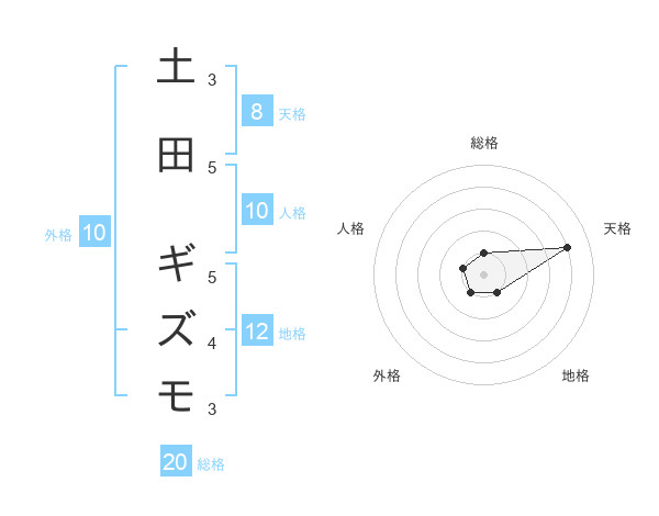 土田 ギズモさんを姓名の画数から五運を鑑定