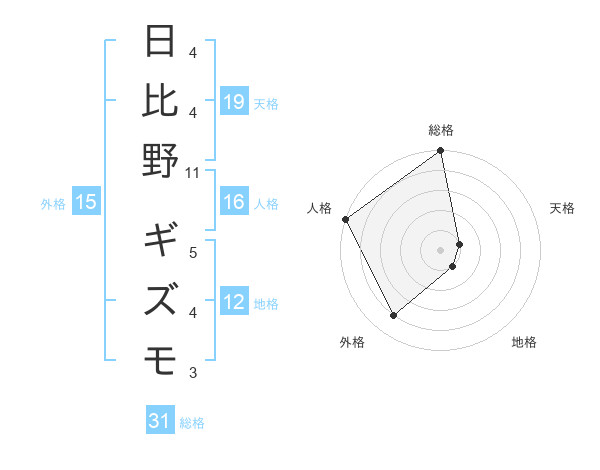 日比野 ギズモさんを姓名の画数から五運を鑑定