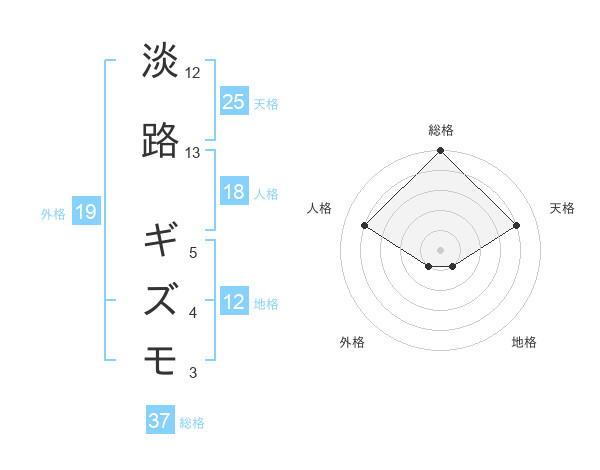淡路 ギズモさんを姓名の画数から五運を鑑定