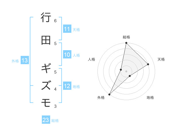 行田 ギズモさんの外格は13画の5点!