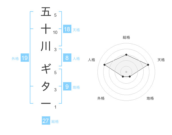 五十川 ギターさんを姓名の画数から五運を鑑定