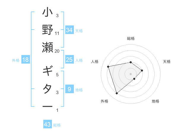 小野瀬 ギターさんを姓名の画数から五運を鑑定