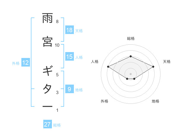 雨宮 ギターさんを姓名の画数から五運を鑑定