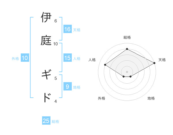 伊庭 ギドさんの天格は16画の5点!