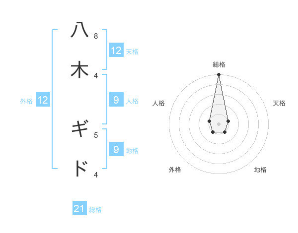 八木 ギドさんの総格は21画の5点!