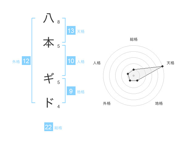 八本 ギドさんの総格は22画の1点!