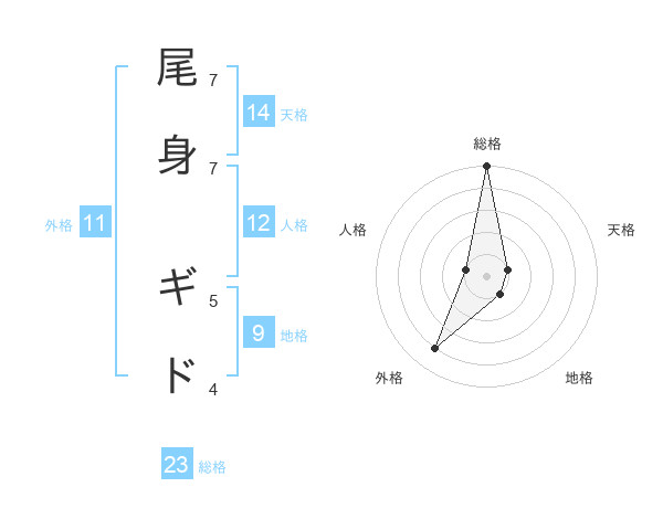 尾身 ギドさんの総格は23画の5点!