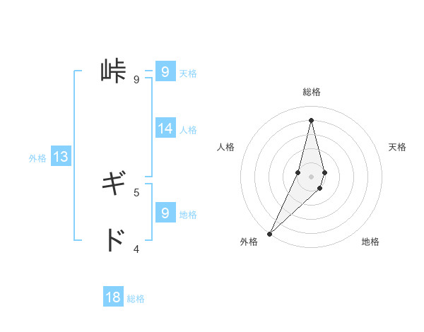 峠 ギドさんの外格は13画の5点!