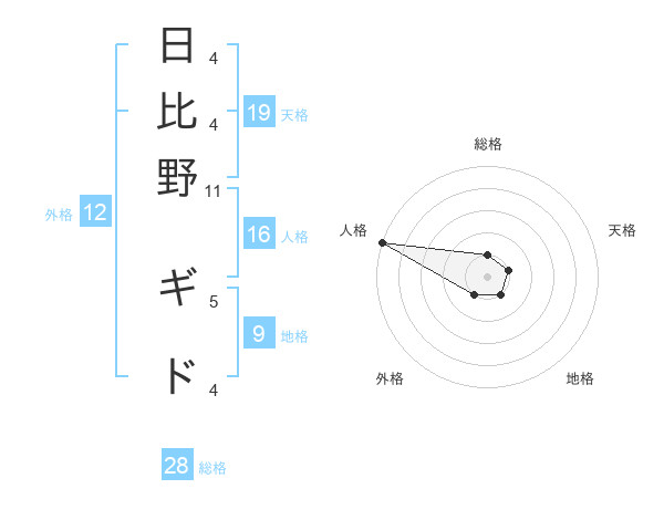 日比野 ギドさんを姓名の画数から五運を鑑定