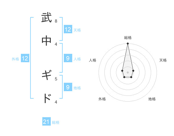 武中 ギドさんの総格は21画の5点!