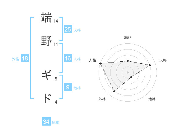 端野 ギドさんの天格は25画の4点!