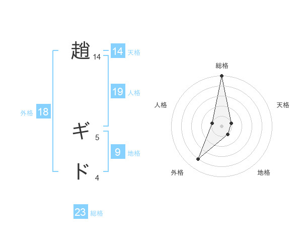 趙 ギドさんの総格は23画の5点!