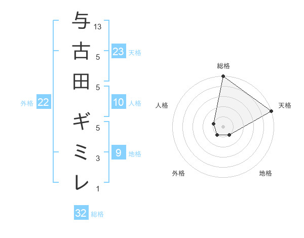 与古田 ギミレさんを姓名の画数から五運を鑑定