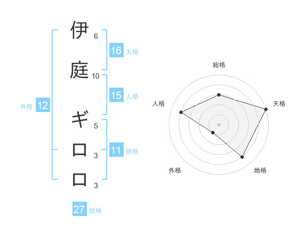 伊庭 ギロロさんの天格は16画の5点!