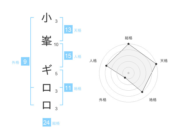 小峯 ギロロさんを姓名の画数から五運を鑑定