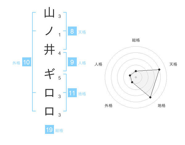 山ノ井 ギロロさんを姓名の画数から五運を鑑定