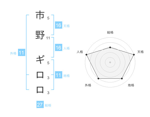 市野 ギロロさんを姓名の画数から五運を鑑定
