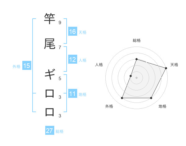 竿尾 ギロロさんの天格は16画の5点!
