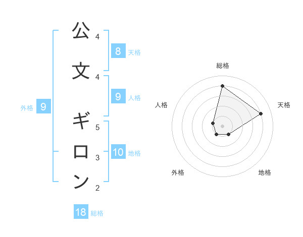 公文 ギロンさんの総格は18画の4点!