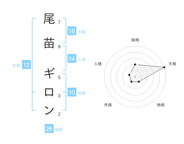 尾苗 ギロンさんを姓名の画数から五運を鑑定