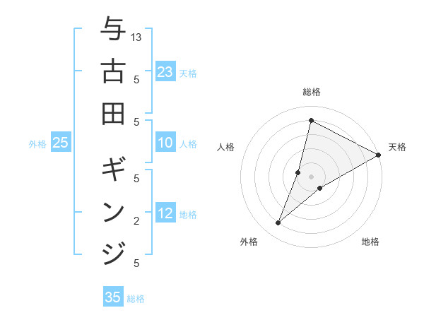 与古田 ギンジさんを姓名の画数から五運を鑑定