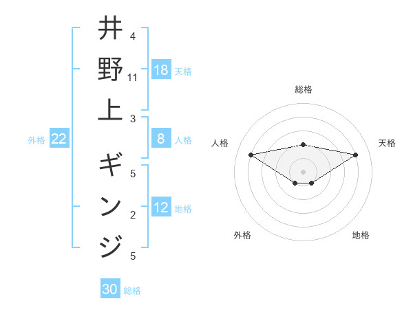 井野上 ギンジさんを姓名の画数から五運を鑑定