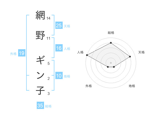 網野 ギン子さんの天格は25画の4点!
