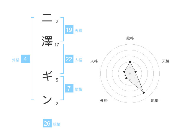 二澤 ギンさんを姓名の画数から五運を鑑定