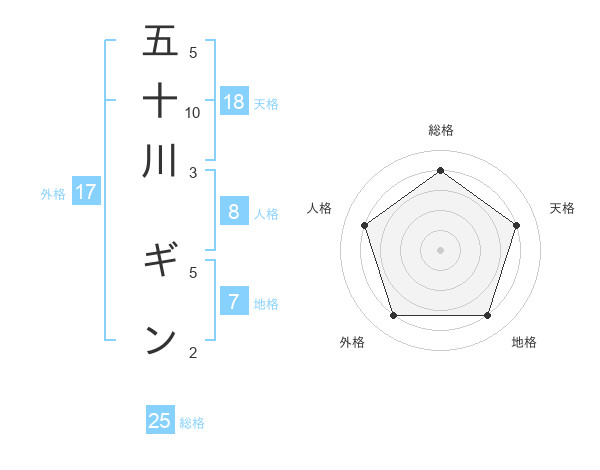 五十川 ギンさんの総格は25画の4点