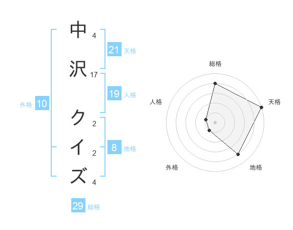 中沢 クイズさんの総格は29画の4点!