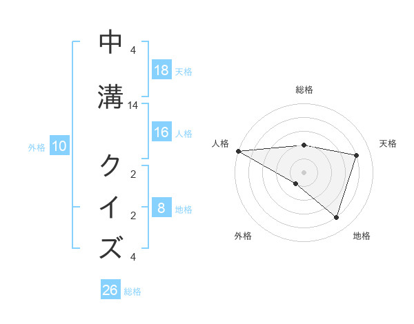 中溝 クイズさんの総格は26画の2点!