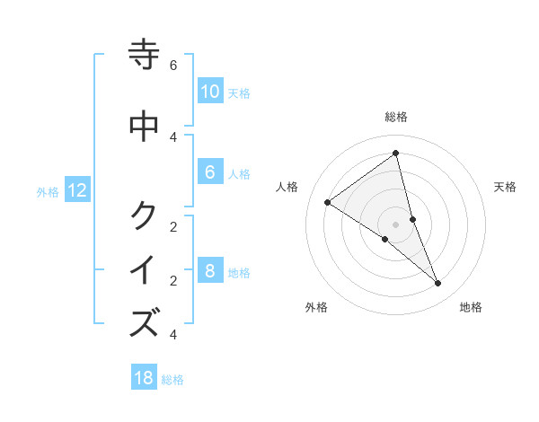 寺中 クイズさんの総格は18画の4点!