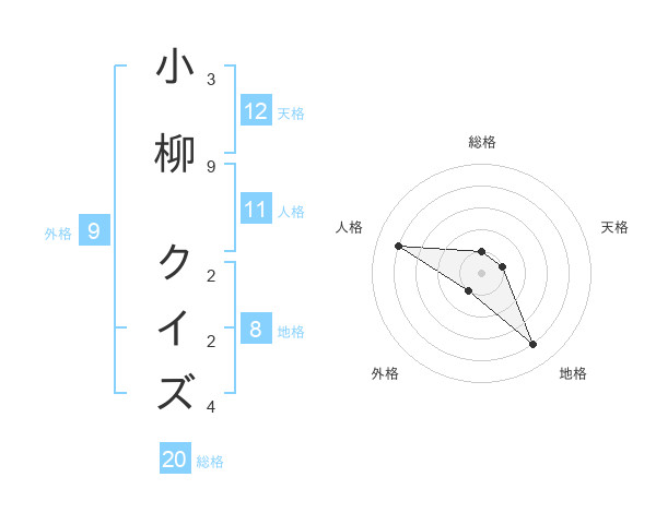小柳 クイズさんを姓名の画数から五運を鑑定