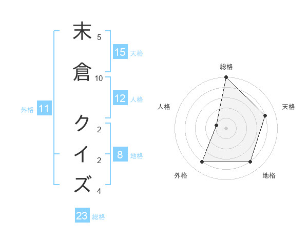 末倉 クイズさんの総格は23画の5点!