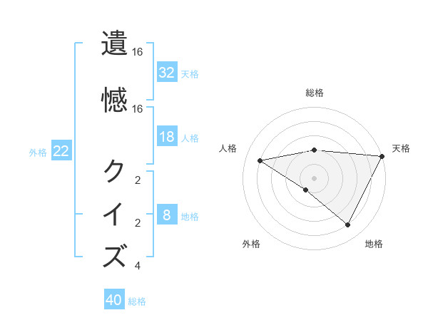 遺憾 クイズさんの総格は40画の2点!