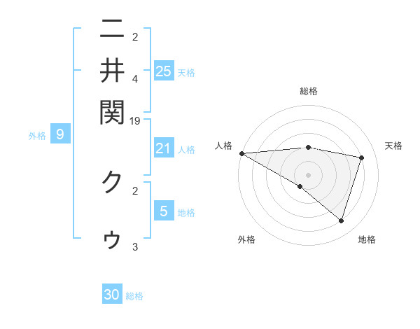 二井関 クゥさんを姓名の画数から五運を鑑定